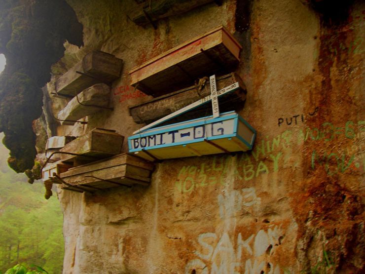 After the deceased are put inside these coffins they are then brought to caves high in the cliffs where they join the coffins of other ancestors. The Sagada people prefer to be buried in the cliffs than to be buried in the ground and have been doing this for more than 2,000 years and the latest addition is said to be put a decade ago!